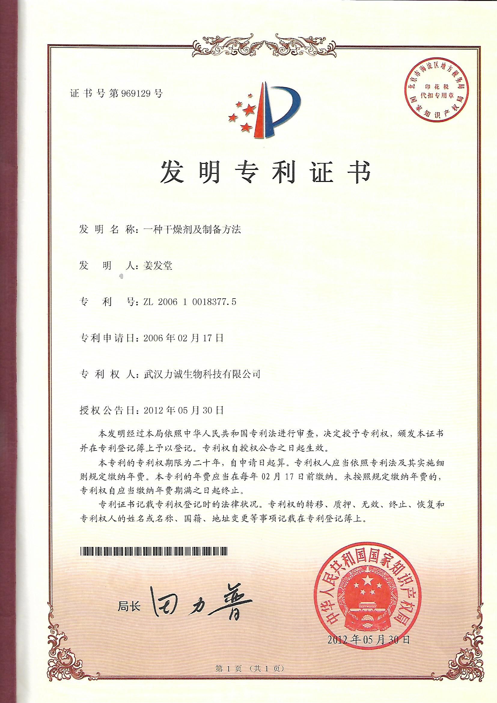 专利名称:可食性干燥剂 专利号:ZL 2005 1 0018580.8