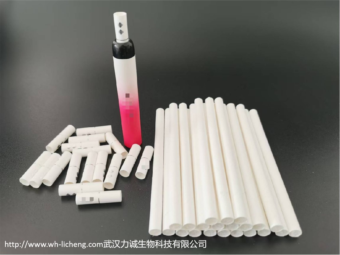 武汉力诚生物有限公司针对以上痛点问题,自主研发出了一款新型可降解植物多糖气凝胶过滤嘴。材料整体质感与传统卷烟烟嘴相似,使传统烟民更易于接受,新烟民体验感更佳;本产品为独立烟嘴,属于一次性用品,可避免烟具共享时的卫生问题;抽吸过程中,可截留住烟油,同时烟气通过过滤嘴时更加均匀。