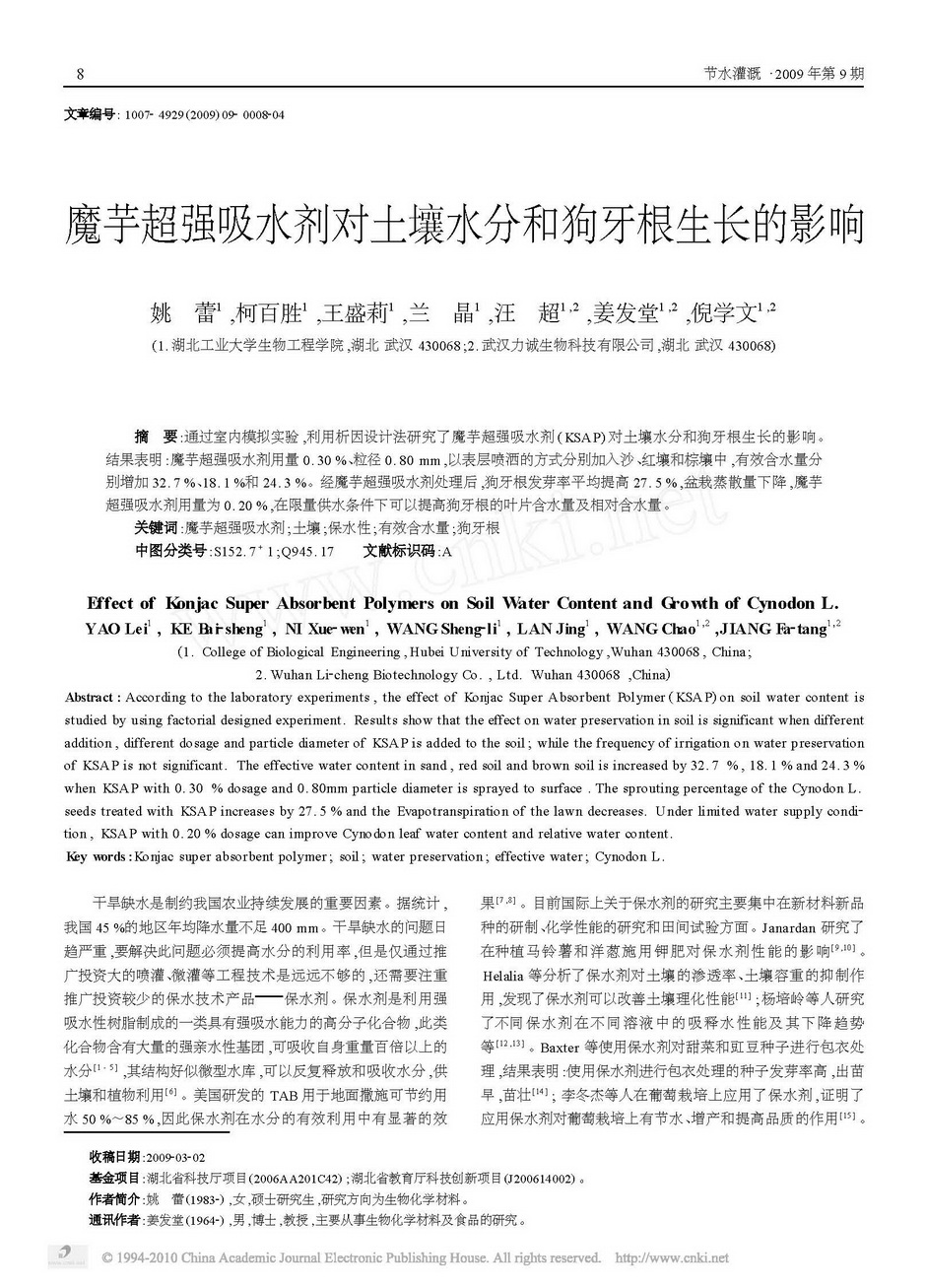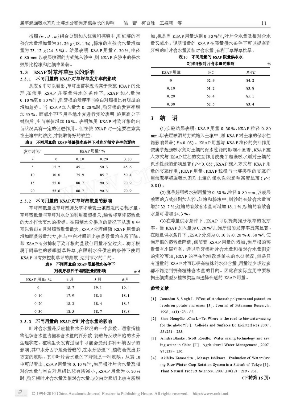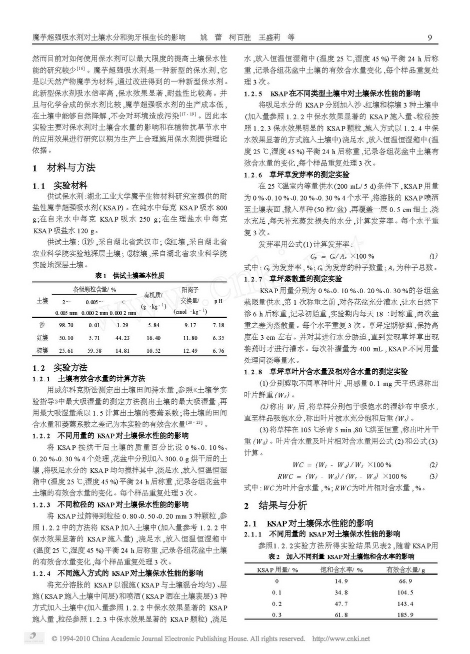 节水灌溉-魔芋超强吸水剂对土壤水分和狗牙根生长的影响